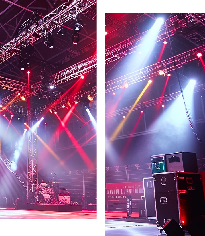 projecteurs LED, lyres, ponts lumineux, éclairage scénique