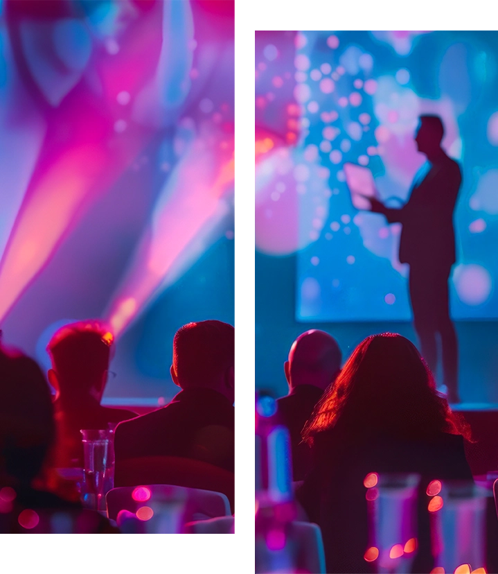 Créez un moment mémorable avec une mise en scène sonore et visuelle qui valorise votre projet et capte l'attention de votre audience.